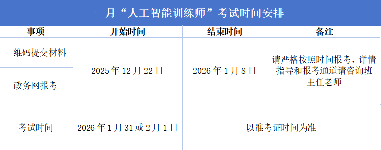 2026年1月人工智能训练师报考通知,重要提醒!