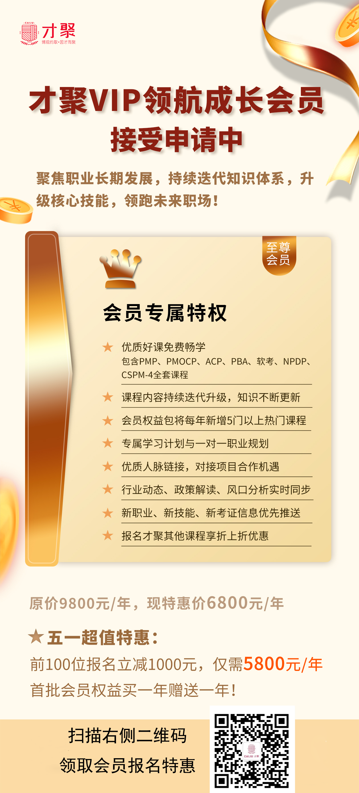 为了让更多同学能以更实惠的价格系统性地学习以上课程,才聚特别推出了“才聚VIP领航成长会员”,聚焦职业长期发展,帮助你持续迭代知识体系,升级核心技能,领跑未来职场。