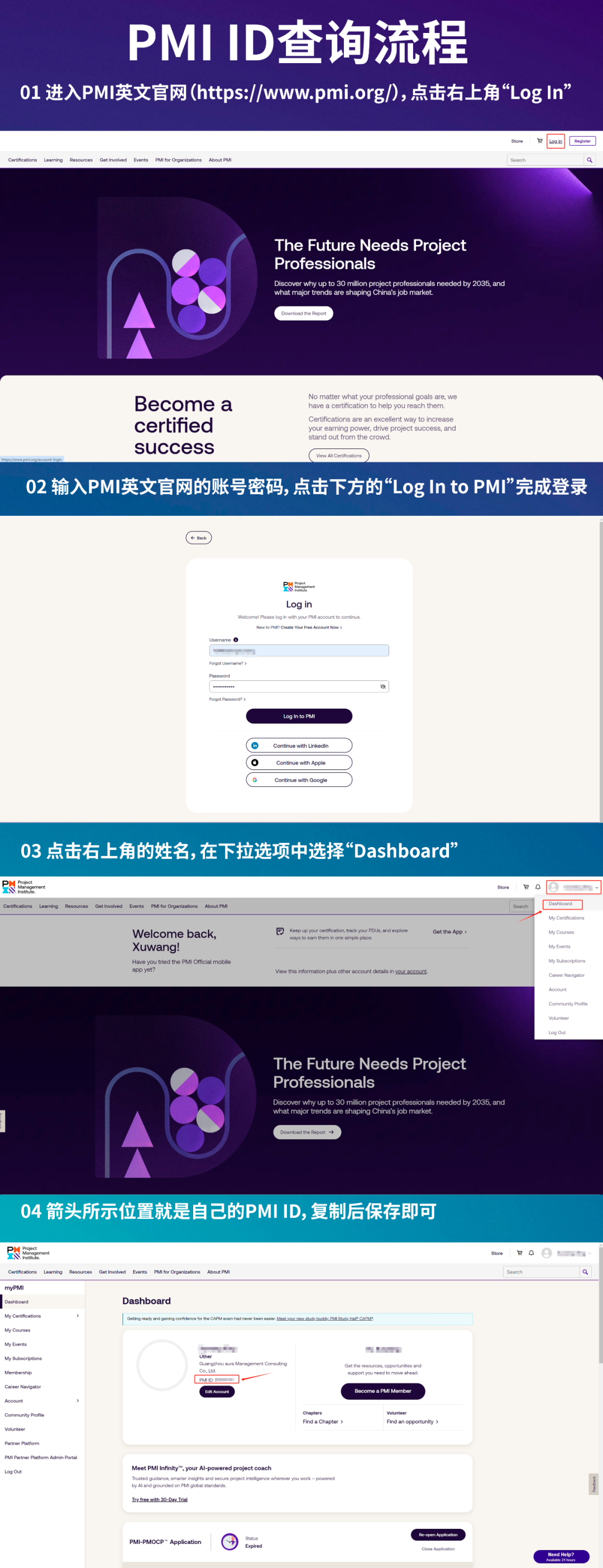 注:忘记PMI ID的同学可以按照下方图片所示步骤查询