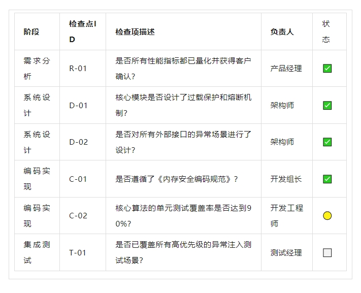(2)构建“过程改进计划”:为了防止重蹈覆辙,我们必须在过程中预防缺陷。我引入了PMP®推荐的工具——质量核对单(Checklist),但我们将其升级为覆盖全流程的《研发过程关键控制点检查清单》。