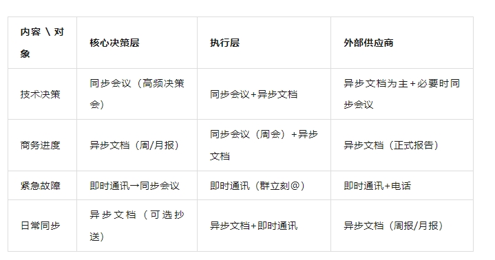 ●Email:仅用于正式里程碑确认和跨部门通告。