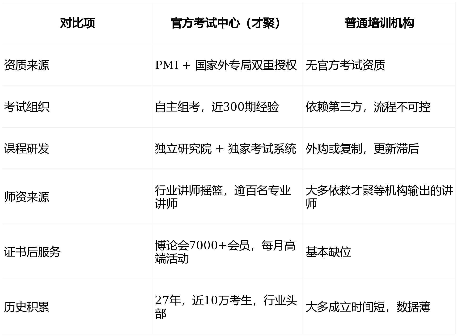 官方考试中心与普通培训机构之间的差距,始于资质,贯穿备考,延伸至职业圈。才聚27年,10万考生,已经给出了答案